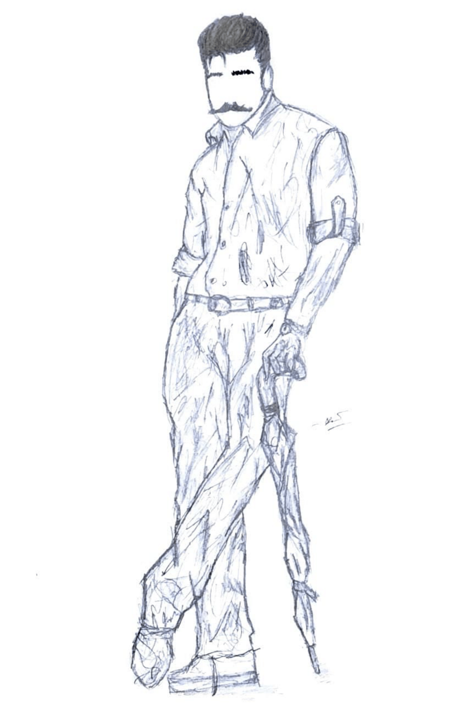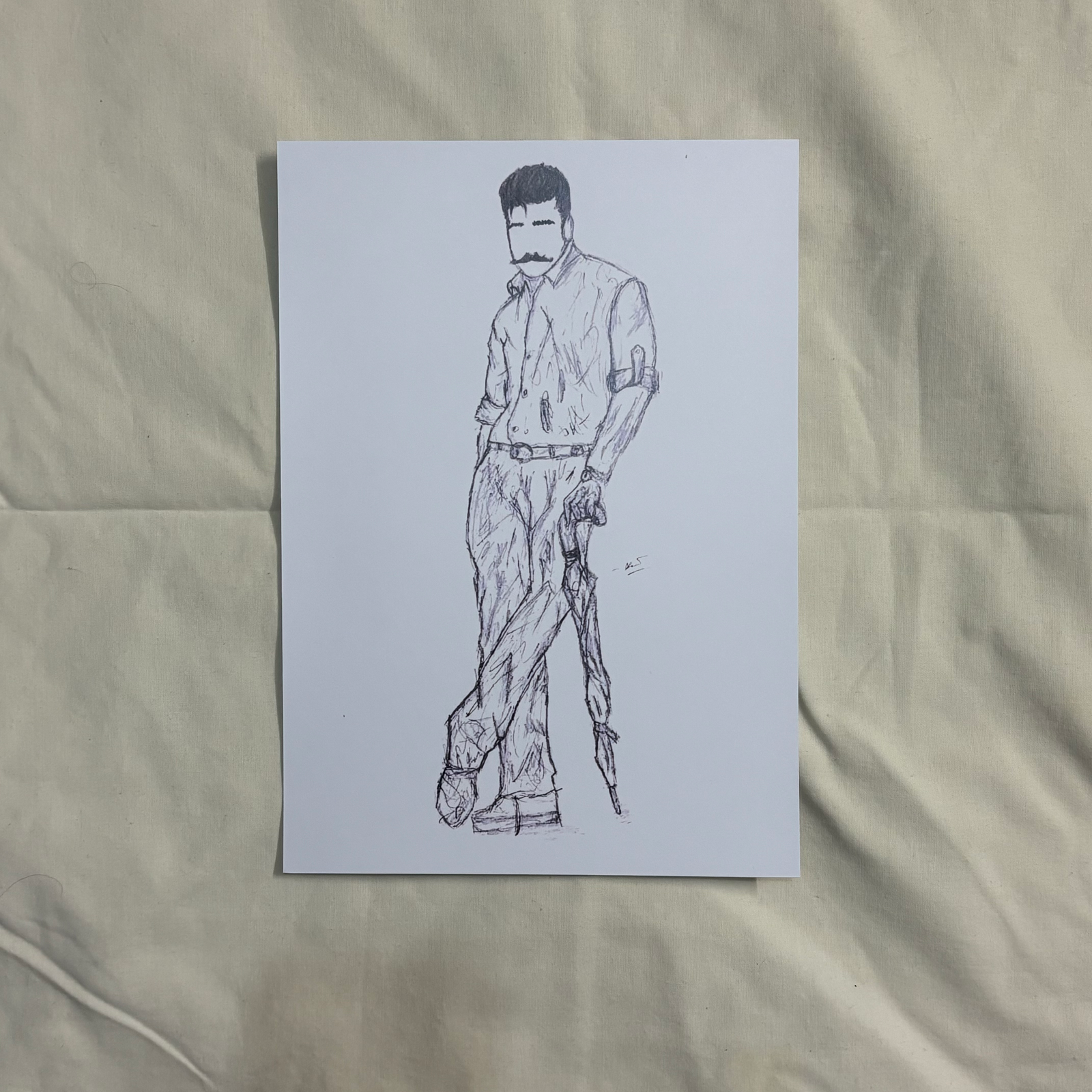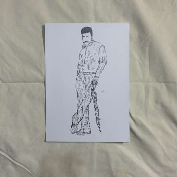 A black and white A4 print of an original sketch of Kamal Haasan from his film Anbe Sivam (2003) by Janani Jegan.