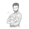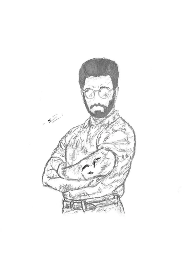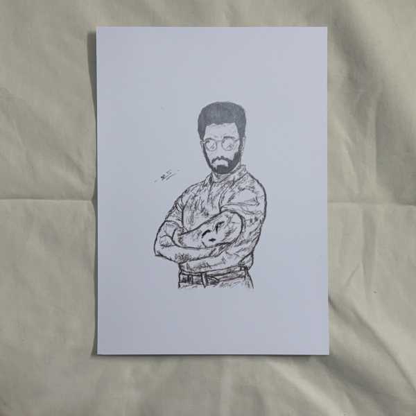 A black and white A4 print of an original sketch of Kamal Haasan from his film Nammavar (1994) by Janani Jegan.