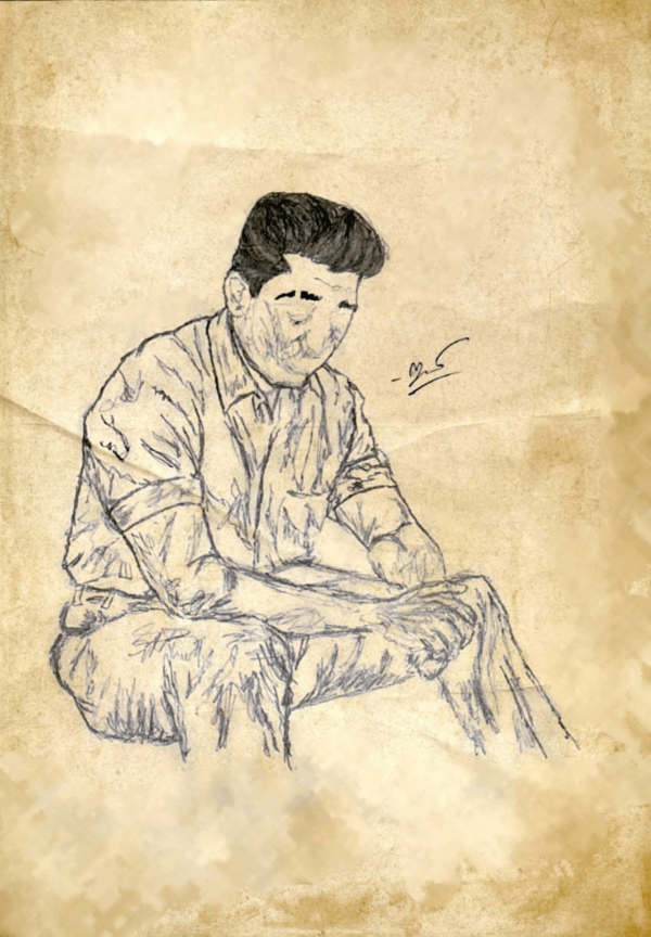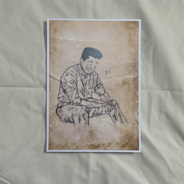 A 300gsm A4 vintage colour print of an original sketch of Kamal Haasan from the film Nayakan (1987) by Janani Jegan.