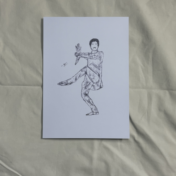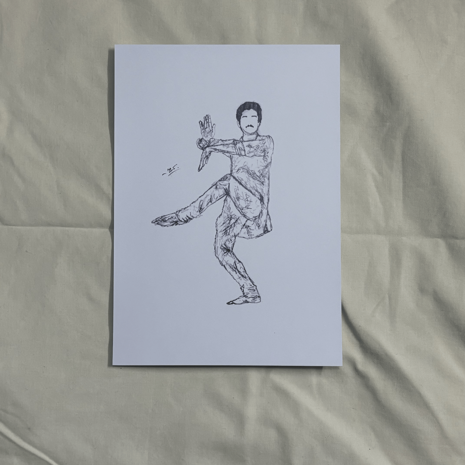 A 300gsm A4 print of an original sketch of Kamal Haasan from the film Salangai Oli (1983) by Janani Jegan.